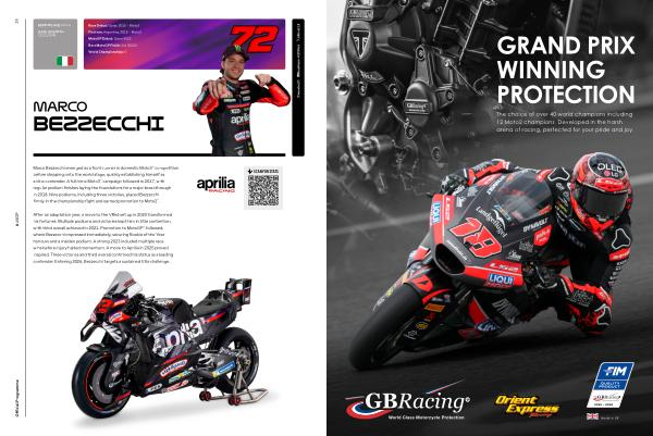 After an adaptation year, a move to the VR46 set up in 2020 transformed his fortunes. Multiple podiums and victories kept him in title contention, with third overall achieved in 2021. Promotion to MotoGP™ followed, where Bezzecchi impressed immediately, securing Rookie of the Year honours and a maiden podium. A strong 2023 included multiple race wins before injury halted momentum. A move to Aprilia in 2025 proved inspired. Three victories and third overall confirmed his status as a leading contender. Entering 2026, Bezzecchi targets a sustained title challenge.