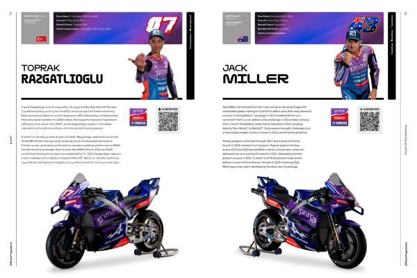 Steady progress continued through 2017 and a move to Pramac Ducati in 2018 marked a turning point. Regular podium finishes across 2019 and 2020 earned Miller a factory Ducati seat, where he delivered two wins and fourth overall in 2021, followed by further podium success in 2022. A switch to KTM produced mixed results before a move to Prima Pramac Yamaha in 2025. Entering 2026, Miller plays a key role in developing Yamaha’ s new V4 package.