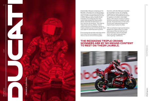 Despite Marc Marquez wrapping up the MotoGP™ title with four rounds to spare, and winning 17 of the year’ s 22 MotoGP™ races, it wasn’ t all plain sailing for Ducati in 2025. Marquez aside, double World Champion Pecco Bagnaia was rarely comfortable aboard the Desmosedici GP25, while Fabio Di Giannantonio’ s form was also up and down. The reigning Triple Crown winners, Riders’, Teams’ and Constructors’ Champions, are by no means content to rest on their laurels. And early signs for 2026 have been positive.