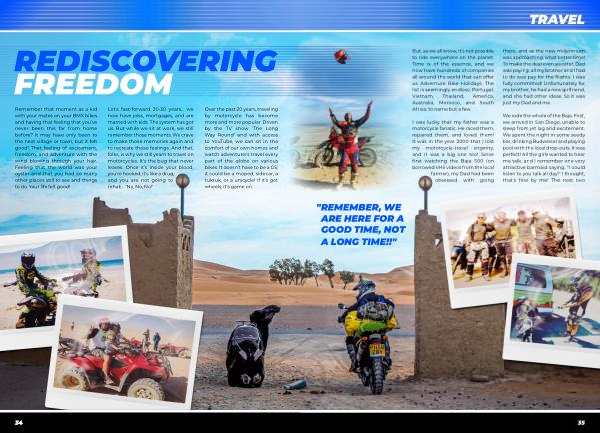 I was lucky that my father was a motorcycle fanatic . He raced them , repaired them , and loved them ! It was in the year 2000 that I lost my motorcycle-travel virginity , and it was a big one too ! Since first watching the Baja 500 ( on borrowed VHS videos from the local farmer ), my Dad had been obsessed with going there , and as the new millennium was approaching , what better time ! To make the deal even sweeter , Dad was paying ; all my brother and I had to do was pay for the flights . I was fully committed ! Unfortunately for my brother , he had a new girlfriend , and she had other ideas . So it was just my Dad and me .