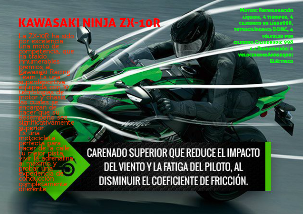 Motor: Refrigeración líquida, 4 tiempos, 4 cilindros en línea998, tetracilíndrico DOHC, 4 válvulas por cilindro.Cilindrada: 998 c.c.Transmisión: 6 velocidadesArranque: Eléctrico