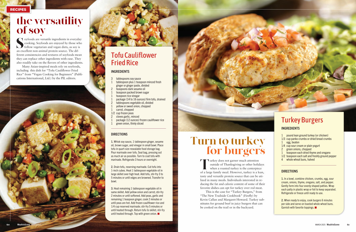 Many Asian-inspired meals rely on soyfoods , including this dish for “ Tofu Cauliflower Fried Rice ” from “ Vegan Cooking for Beginners ” ( Publications International , Ltd .) by the PIL editors .