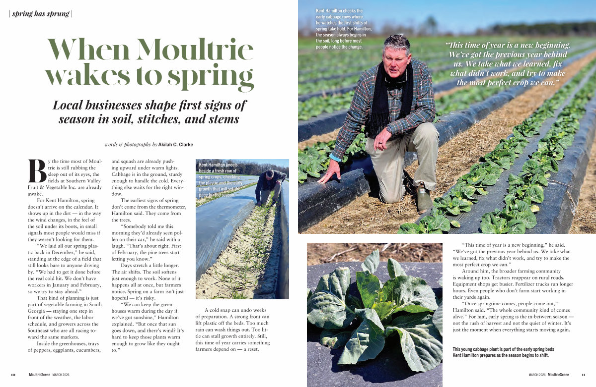 Kent Hamilton checks the early cabbage rows where he watches the first shifts of spring take hold. For Hamilton, the season always begins in the soil, long before most people notice the change.“ This time of year is a new beginning. We’ ve got the previous year behind us. We take what we learned, fix what didn’ t work, and try to make the most perfect crop we can.”