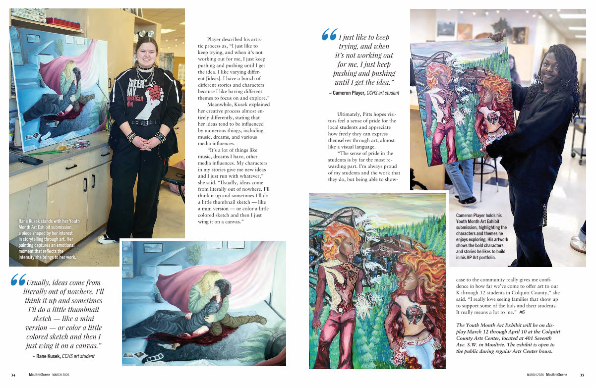 The Youth Month Art Exhibit will be on display March 12 through April 10 at the Colquitt County Arts Center, located at 401 Seventh Ave. S. W. in Moultrie. The exhibit is open to the public during regular Arts Center hours.