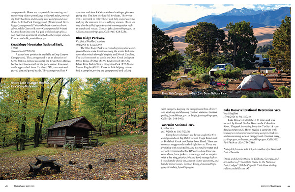 Lake Roosevelt stretches 133 miles and was formed by Grand Coulee Dam on the Columbia River. The park is seeking hosts for 7 of its 18 standard campgrounds. Hosts receive a campsite with hookups in return for monitoring camper check-ins and maintaining a clean campground. Contact mary _ jay @ nps. gov, or hunter _ wood @ nps. gov. Call( 509) 754-7889 or( 509) 754-7886.