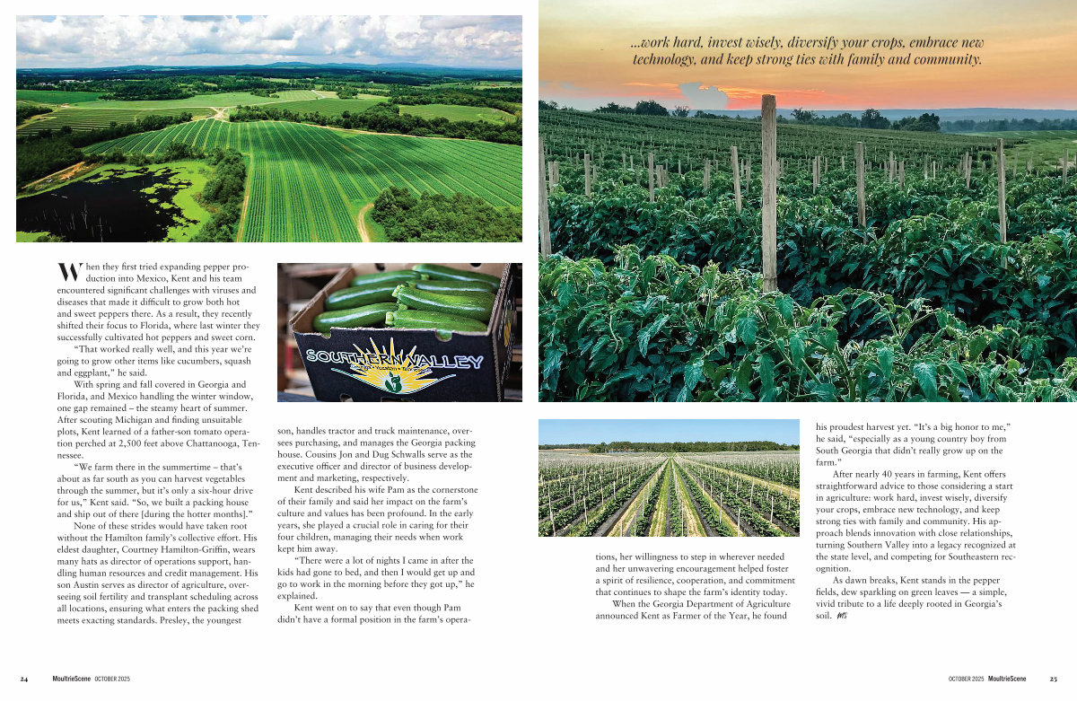 After nearly 40 years in farming, Kent offers straightforward advice to those considering a start in agriculture: work hard, invest wisely, diversify your crops, embrace new technology, and keep strong ties with family and community. His approach blends innovation with close relationships, turning Southern Valley into a legacy recognized at the state level, and competing for Southeastern recognition.