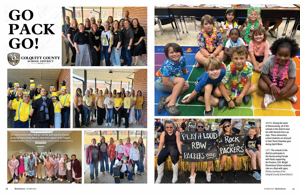 LEFT: The schools in the district participate in the Homecoming Parade with floats supporting the Packers. R. B. Wright Elementary School students ride on a float with signs. Photos courtesy of the Colquitt County School District