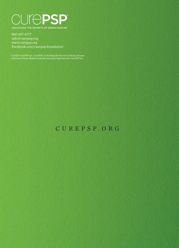 © 2023 CurePSP inc. CurePSP, Unlocking the Secrets of Brain Disease et Because Hope Matters sont des marques déposées de CurePSP inc.