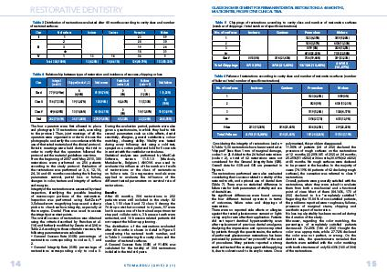 Table 5 Chippings of restorations according to cavity class and number of restoration surfaces
