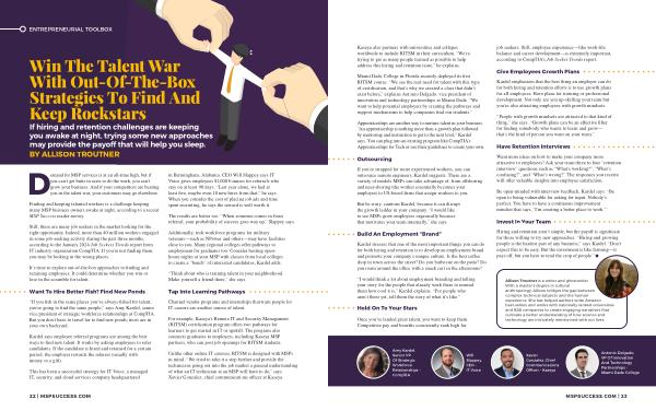 Finding and keeping talented workers is a challenge keeping many MSP business owners awake at night , according to a recent MSP Success reader survey .