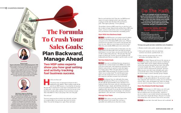 Two MSP sales experts show you how goal setting and activity tracking fuel business success .