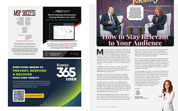 MSP Success is a valued and recognized trademark of Technology Marketing Toolkit, LLC. This publication may not be reproduced, all or in part, without written consent from the publisher. Every effort has been made to ensure the accuracy of all content in this publication, however, neither the publisher nor Technology Marketing Toolkit, LLC will be held responsible for omissions or errors.