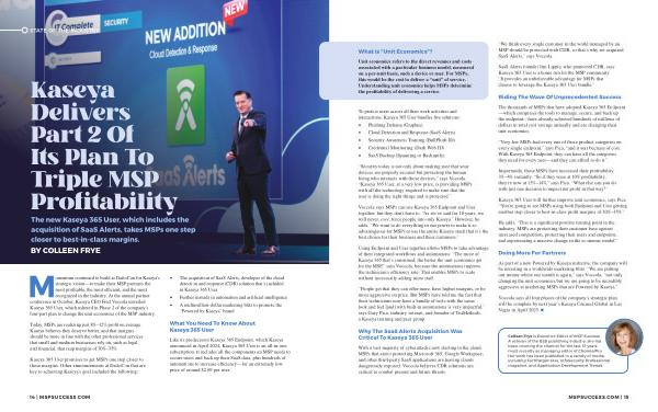 Using Endpoint and User together allows MSPs to take advantage of their integrated workflows and automations . “ The more of Kaseya 365 that ’ s consumed , the better the unit economics get for the MSP ,” says Voccola , because the automations improve the technician ’ s efficiency rate . That enables MSPs to scale without necessarily adding more staff .