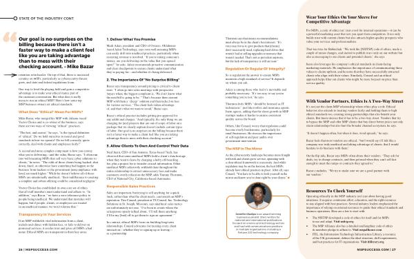 • The MSP Alliance also has a detailed and lengthier code of ethics its members pledge to adhere to . Visit mspalliance . com