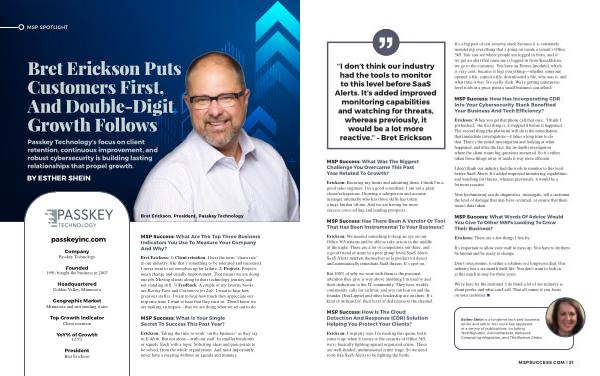 Bret Erickson : 1 ) Client retention . I hear the term “ churn rate ” in our industry , like that ’ s something to be tolerated and measured . I never want to set ourselves up for failure . 2 ) Projects . Projects mean change and usually improvement . That means we are doing our job . Moving clients along in their technology journey and not standing still . 3 ) Feedback . A couple of my favorite books are Raving Fans and Customers for Life . I want to hear how great our staff is . I want to hear how much they appreciate our response time . I want to hear that they trust us . Then I know we are making an impact — that we are doing what we set out to do .