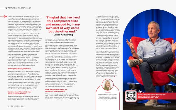 “ I was so mad ,” Armstrong said . “ The old Lance would have got a group of my friends and turned around . But I ’ m not like that anymore . When the manager came on the phone , I said , ‘ Hey , I ’ m Lance Armstrong . You got a bunch of guys out there who were yelling and screaming .’ He said , ‘ Man , I ’ m really sorry about that .’ I said , ‘ Here ’ s the deal . Here ’ s my credit card . Buy the whole table drinks for as long as they sit there . No matter how much they drink or what they eat , it ’ s on me . But you must go over there and say , “ This is on Lance .” I hung up , and I was like , that ’ s action . The wrong thing to do would have been to storm over there and get into it with them , but the right thing to do is to do something . That ’ s what I came up with , and I think it worked out well .”
