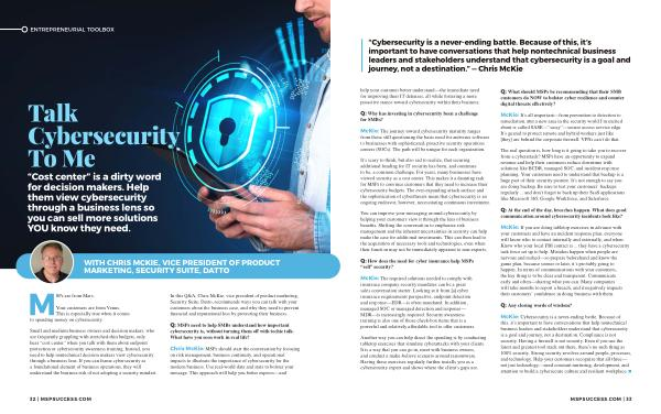 Chris McKie : MSPs should start the conversation by focusing on risk management , business continuity , and operational impacts to illustrate the importance of cybersecurity for the modern business . Use real-world data and stats to bolster your message . This approach will help you better express — and
