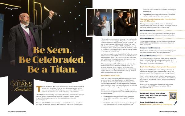 Winners of the MSP Titans of the Industry Awards will be honored at an exclusive red-carpet, black-tie gala in Beverly Hills, California, with special celebrity guests.