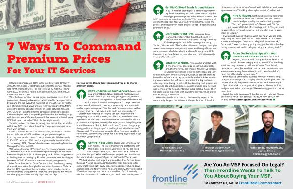 3 could get premium prices in his Atlanta market . “ An MSP from Atlanta stood up and said , ‘ Will , I was charging and getting those prices four years ago .’ I went home , raised my prices , and closed even more business once I began charging premium prices .”