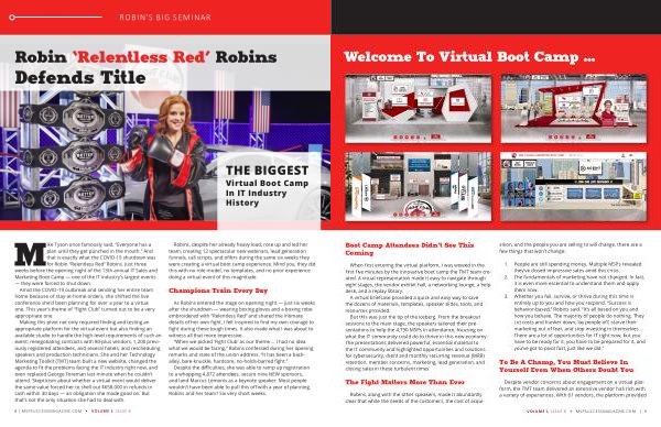 Mike Tyson once famously said , “ Everyone has a plan until they get punched in the mouth .” And that is exactly what the COVID-19 shutdown was for Robin “ Relentless Red ” Robins . Just three weeks before the opening night of the 13th annual IT Sales and Marketing Boot Camp — one of the IT industry ’ s largest events — they were forced to shut down .