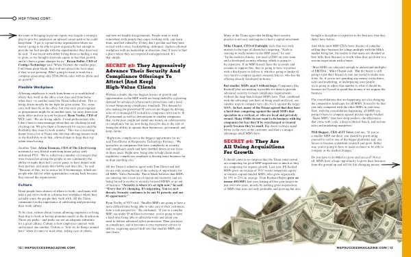 But smaller MSPs aren ’ t without hope . Companies like RocketCyber are making it possible for them to provide advanced security to meet compliance requirements without the deep bench larger MSPs have . That , combined with the advantage you have of being small and local , are surefire ways to compete very effectively against the larger MSPs . In fact , many of the Titans agreed that they have a hard time competing against the small MSPs that specialize in a vertical , or who are local and privately owned . Many SMBs do not want to do business with big companies for fear they ’ ll be overcharged or treated poorly because they ’ re small . Big doesn ’ t always equal better in the eyes of the customer , and that ’ s a unique advantage small MSPs have .