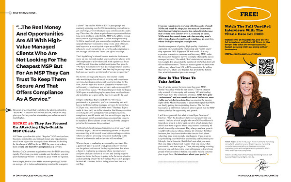 Watch some of my personal , one-on-one , full interviews with the MSP Titans to dive deeper into what the most successful , fastest-growing MSPs are doing in their businesses .