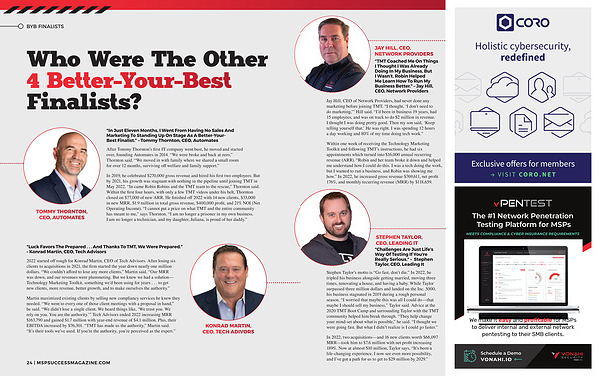 “ In Just Eleven Months , I Went From Having No Sales And Marketing To Standing Up On Stage As A Better-Your- Best Finalist .” – Tommy Thornton , CEO , Automates