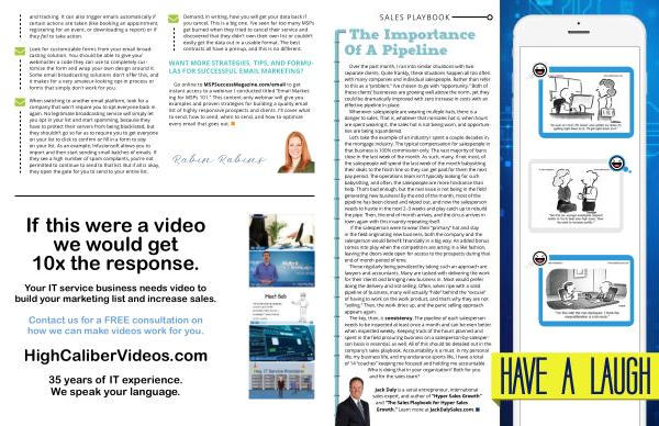 Go online to MSPSuccessMagazine . com / email to get instant access to a webinar I conducted titled “ Email Marketing for MSPs 101 .” This content-only webinar will give you examples and proven strategies for building a quality email list of highly responsive prospects and clients . I ’ ll cover what to send , how to send , when to send , and how to optimize every email that goes out . n