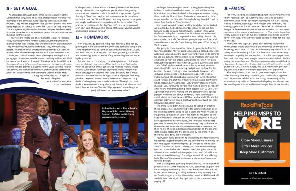 With backing from Samsung , FUBU sold $ 300 million worth of products in just three months . As FUBU continued to grow , John kept studying and fueling his passion . He learned about distribution , manufacturing , staffing , and everything else required for functioning as a multimillion-dollar brand . As FUBU took off , so did John ’ s celebrity in the rap industry . His homework was paying off .