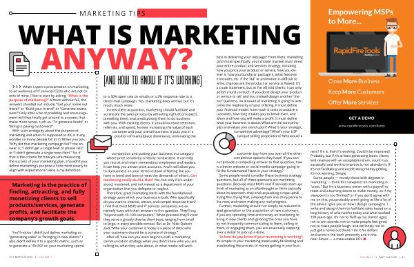 Therefore , great marketing starts with the foundational strategy upon which your business is built . Who specifically do you want to interest , attract , and compel response from ? I find that most MSPs and IT services companies are extremely fuzzy with their answers to this question . They ’ ll say , “ Anyone with 10 – 100 computers .” When pressed , they ’ ll insist they serve a grossly diverse client base , ranging from small to large , in every possible vertical . But as Dr . Nido Qubein said , “ Who your customer is today is a piece of data ; who your customers should be is a piece of strategy .”