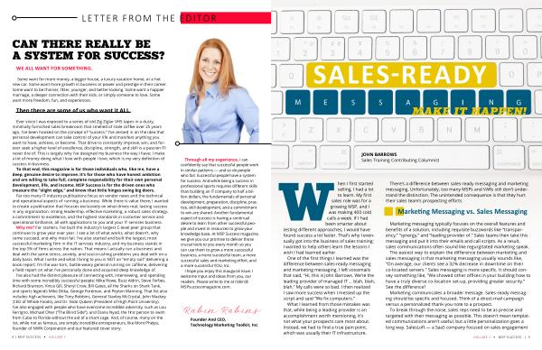 One of the first things I learned was the difference between sales-ready messaging and marketing messaging . I left voicemails that said , “ Hi , this is John Barrows . We ’ re the leading provider of managed IT … blah , blah , blah .” My calls were so bad . I then realized I saw more success when I messed up the script and said “ We fix computers .”