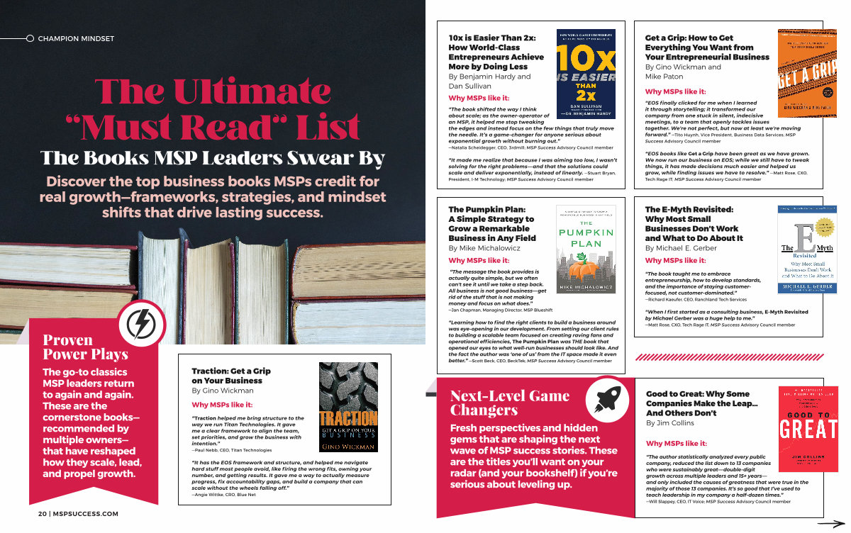 The go-to classics MSP leaders return to again and again. These are the cornerstone books— recommended by multiple owners— that have reshaped how they scale, lead, and propel growth.