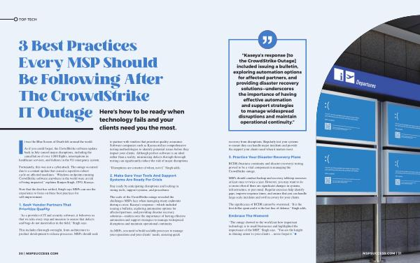“ The outage showed to the world just how important technology is to small businesses and highlighted the importance of the MSP ,” Singh says . “ You are the knight in shining armor to your clients ... never forget it .”