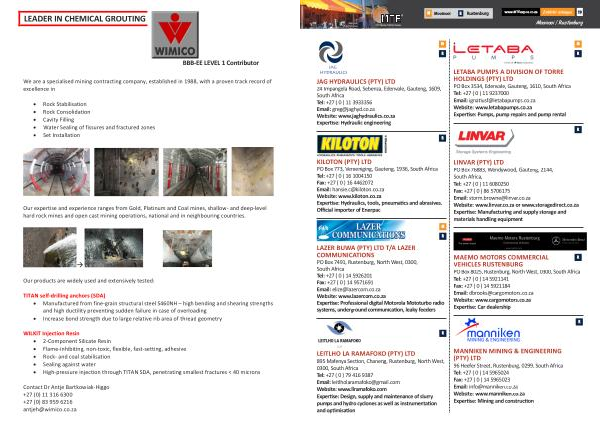 M Mooinooi R Rustenburg www . MTEexpos . co . za Exhibitor catalogue 19