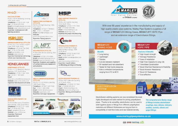 CATALOGUE LISTINGS Y o u r 8 Exhibition catalogue V a l u e P a r t n e r MATLA | 8 MARCH 2018 www.miningexhibitions.co.za