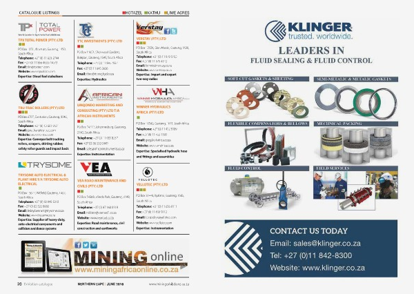 CATALOGUE LISTINGS 20 Exhibition catalogue HOTAZEL NORTHERN CAPE | JUNE 2018 KATHU LIME ACRES www.miningexhibitions.co.za