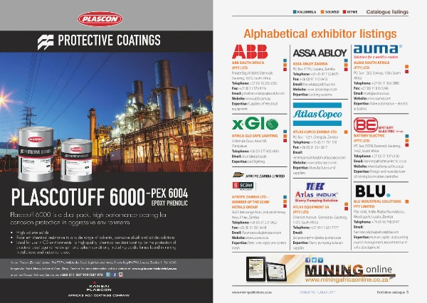 KALUMBILA SOLWEZI KITWE Catalogue listings Alphabetical exhibitor listings www.miningexhibitions.co.za ZAMBIA SEPTEMBER 2017 Exhibition catalogue 5