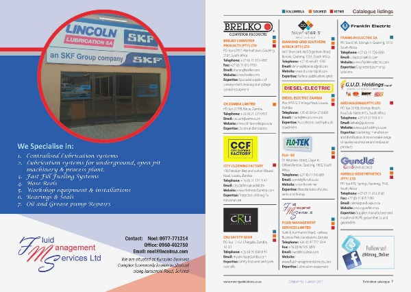 KALUMBILA SOLWEZI KITWE Catalogue listings Follow us! @Mining_Online www.miningexhibitions.co.za ZAMBIA SEPTEMBER 2017 Exhibition catalogue 7
