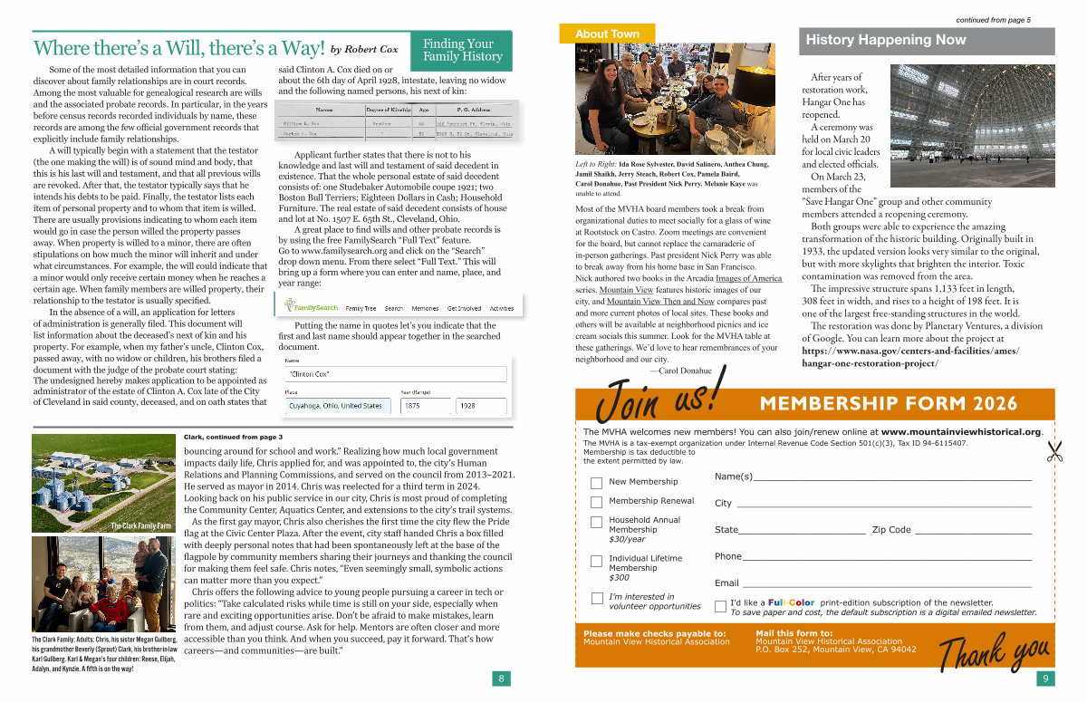 Mail this form to: Mountain View Historical Association P. O. Box 252, Mountain View, CA 94042