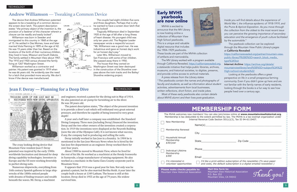 The crazy looking diving device that Mountain View resident Jean F. Deray patented was inspired by the early 1900s worldwide fascination and demand for deep diving capability technologies. Inventors in Europe and the US were working feverishly to perfect diving suits.