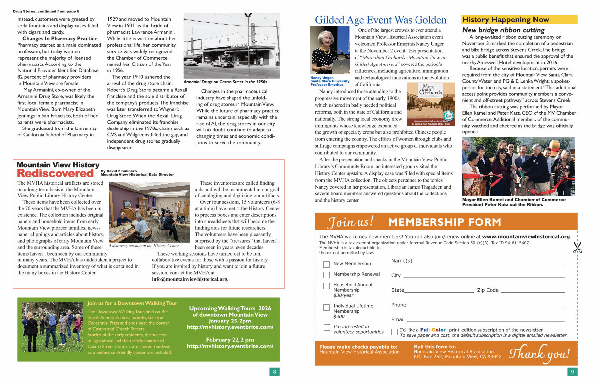 Upcoming Walking Tours 2026 of downtown Mountain View January 25, 2pm http:// mvhistory. eventbrite. com /