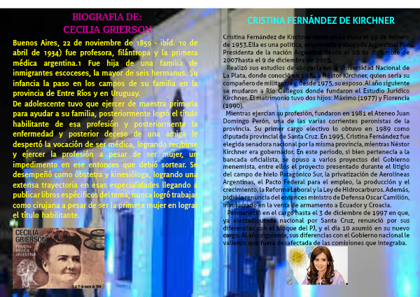 Cristina Fernández de Kirchner nació en La Plata el 19 de febrero de 1953.Ella es una política, empresaria y abogada Argentina. Fue Presidenta de la nación Argentina desde el 10 de diciembre de 2007hasta el 9 de diciembre de 2015.