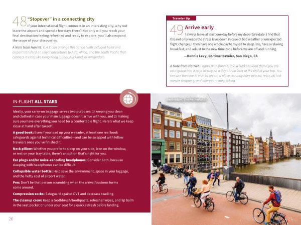 A Note from Harriet : I agree with Bonnie , and would also add that if you are on a group trip , it pays to stay on a day or two later at the end of your trip . You can use the time to visit ( or revisit ) a place you may have missed , relax , do lastminute shopping , and take your time packing .