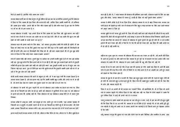 किला ख़ुशी के िारे पागल हुई जाती थी. टदशा की शादी वाली बात सारे िोहल्ले की औरतों से कह डाली. िोहल्ले की औरतें भी ताज्जुब करतीीं थी. उन्हें सिझ न आता था कक शोभराज जैसा ननकम्िा आदिी इतना अच्छा काि कै से कर सकता है? किला तो शोभराज के पुराने कृ त्यों को भूल ही गयी थी. न उसे जिीन हडपने की बात ध्यान रही और न पैसों के ऐर फे र की बातें ही ध्यान रहीीं. बस टदशा की शादी अच्छे घर िें हो रही है यही काफी था.