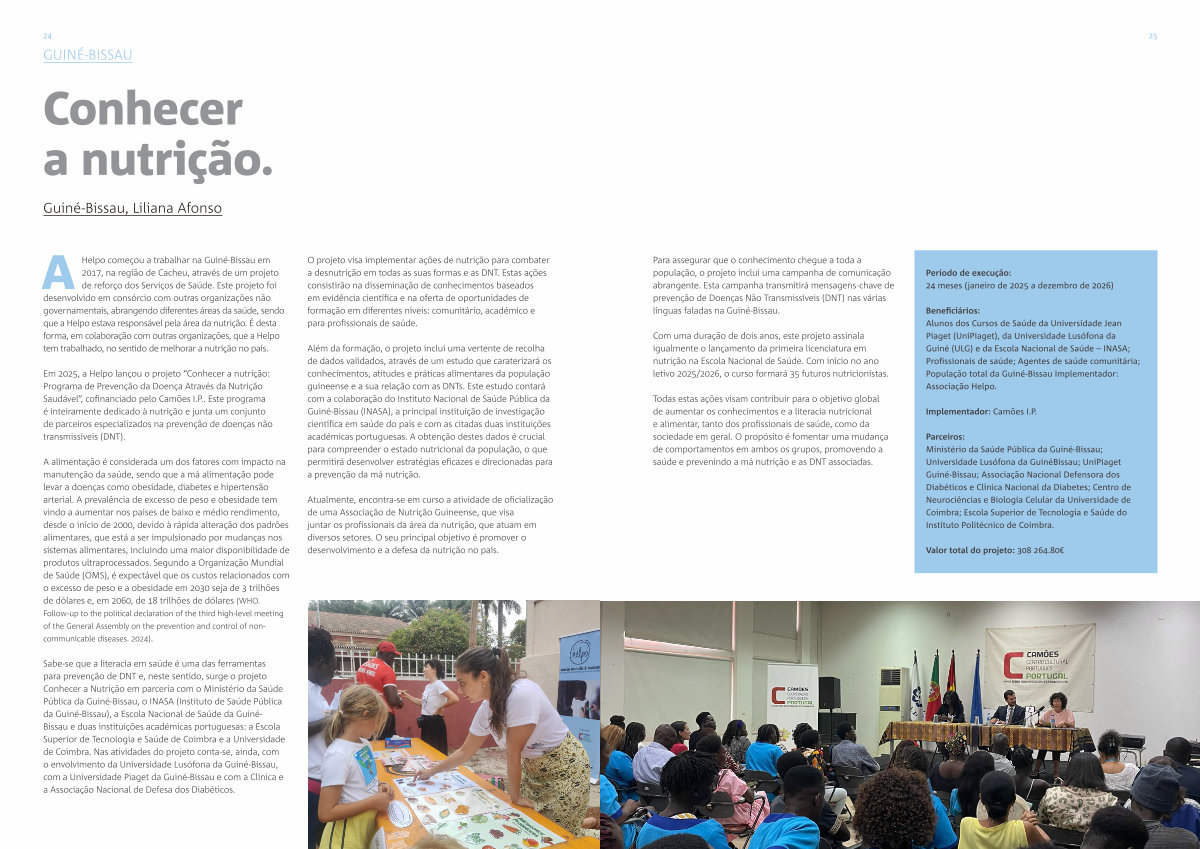 Parceiros: Ministério da Saúde Pública da Guiné-Bissau; Universidade Lusófona da GuinéBissau; UniPiaget Guiné-Bissau; Associação Nacional Defensora dos Diabéticos e Clínica Nacional da Diabetes; Centro de Neurociências e Biologia Celular da Universidade de Coimbra; Escola Superior de Tecnologia e Saúde do Instituto Politécnico de Coimbra.