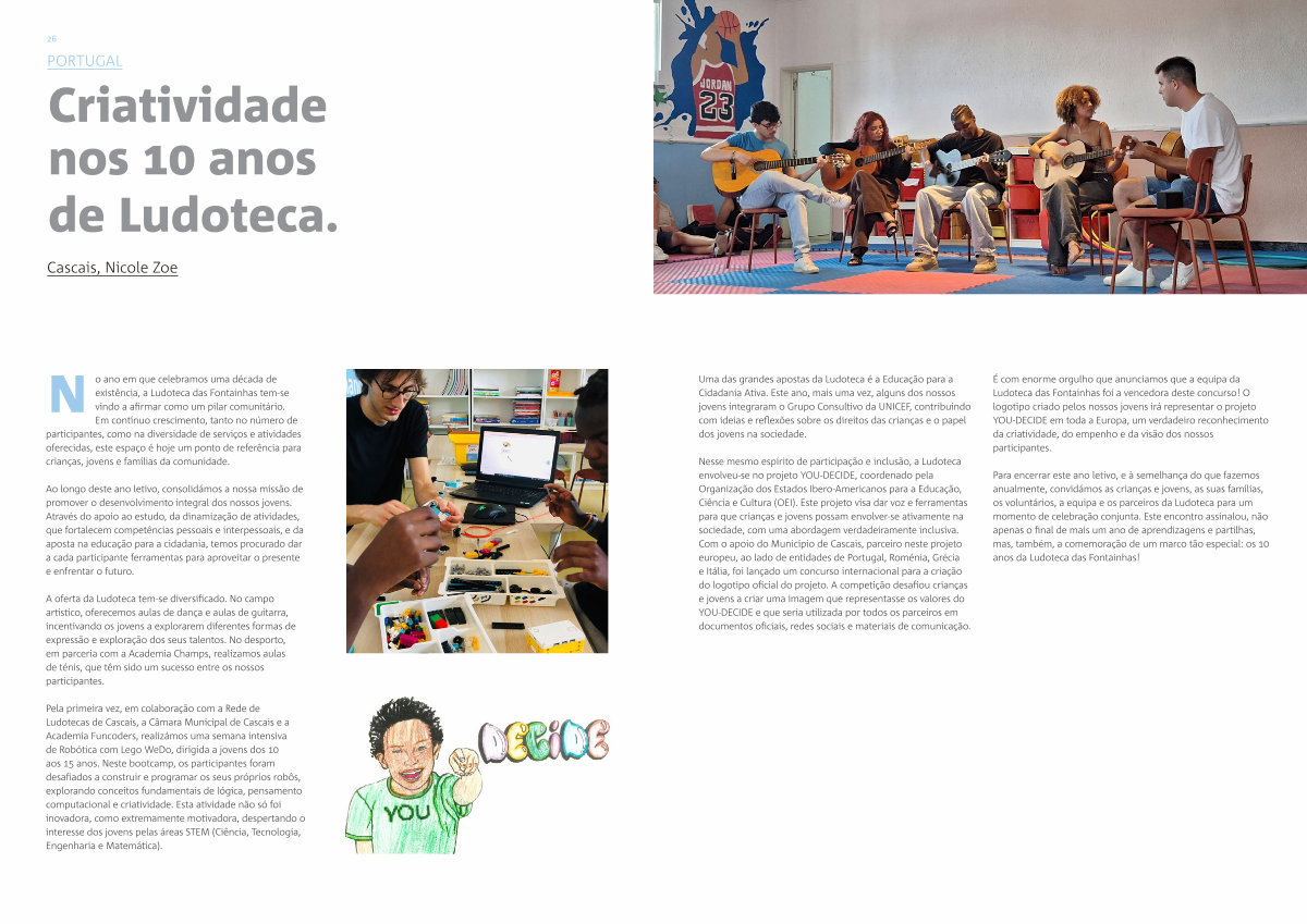 N o ano em que celebramos uma década de existência, a Ludoteca das Fontainhas tem-se vindo a afirmar como um pilar comunitário. Em contínuo crescimento, tanto no número de participantes, como na diversidade de serviços e atividades oferecidas, este espaço é hoje um ponto de referência para crianças, jovens e famílias da comunidade.