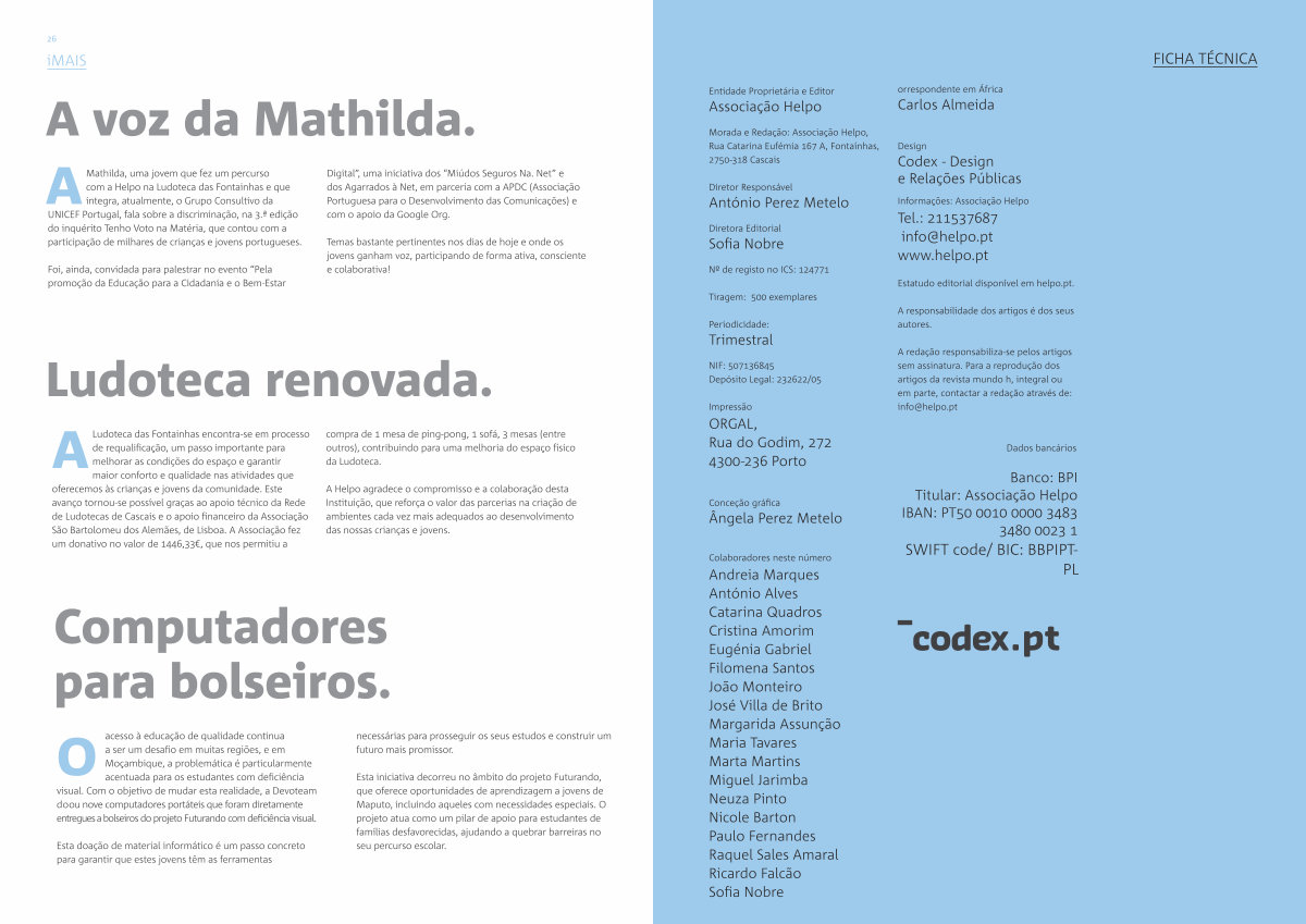 Morada e Redação: Associação Helpo, Rua Catarina Eufémia 167 A, Fontaínhas, 2750-318 Cascais