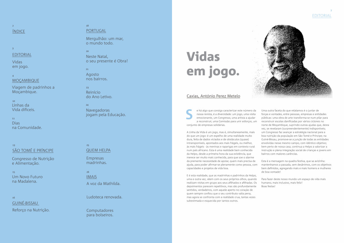S e há algo que consiga caracterizar este número da nossa revista, é a diversidade: um jogo, uma visita emocionante, um Congresso, uma artista a ajudar a reconstruir, uma Comissão para unir esforços, um conjunto de empresas solidárias.