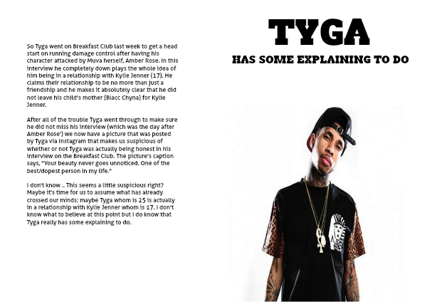 So Tyga went on Breakfast Club last week to get a head start on running damage control after having his character attacked by Muva herself, Amber Rose. In this interview he completely down plays the whole idea of him being in a relationship with Kylie Jenner (17). He claims their relationship to be no more than just a friendship and he makes it absolutely clear that he did not leave his child's mother (Blacc Chyna) for Kylie Jenner.