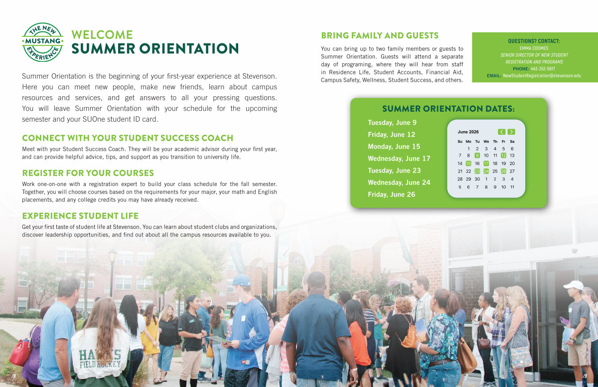 QUESTIONS? CONTACT: EMMA COOMES SENIOR DIRECTOR OF NEW STUDENT REGISTRATION AND PROGRAMS PHONE: 443-352-5817 EMAIL: NewStudentRegistration @ stevenson. edu